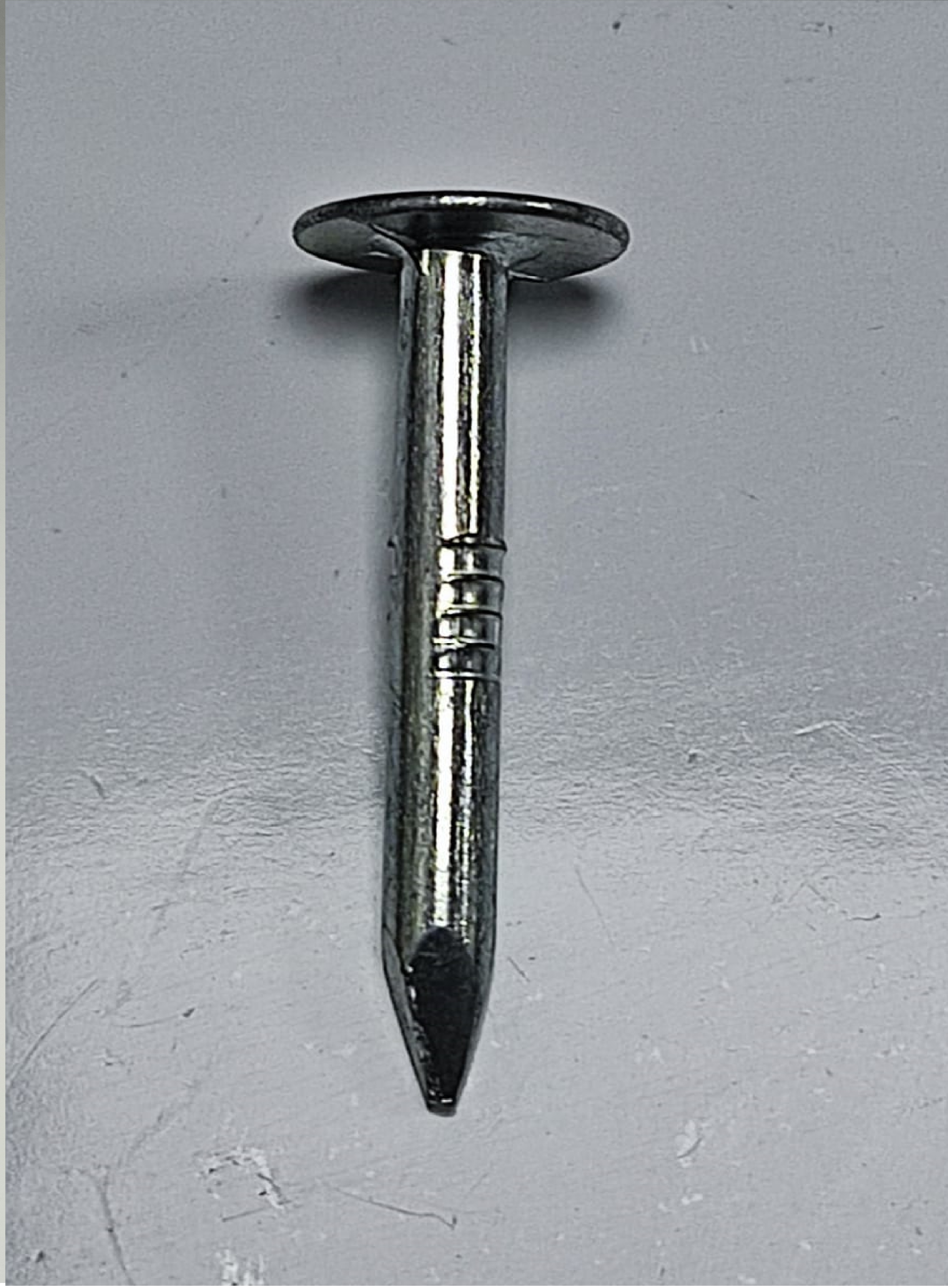 Clavo de acero zincado para teja asfaltica de 1" con cabeza ancha de 10mm en bolsas de 1kg.